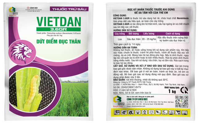 - VIETDAN 3.6GR là thuốc trừ sâu dạng hạt rải, chứa hoạt chất Nereistoxin. Giải pháp diệt sâu hiệu quả, an toàn cho cây trồng.