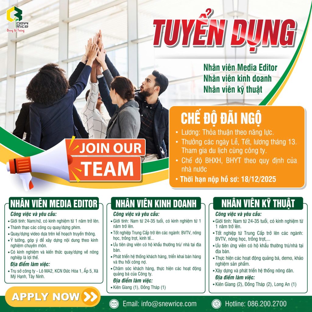 ✉️ Email nhận hồ sơ: info@snewrice.com